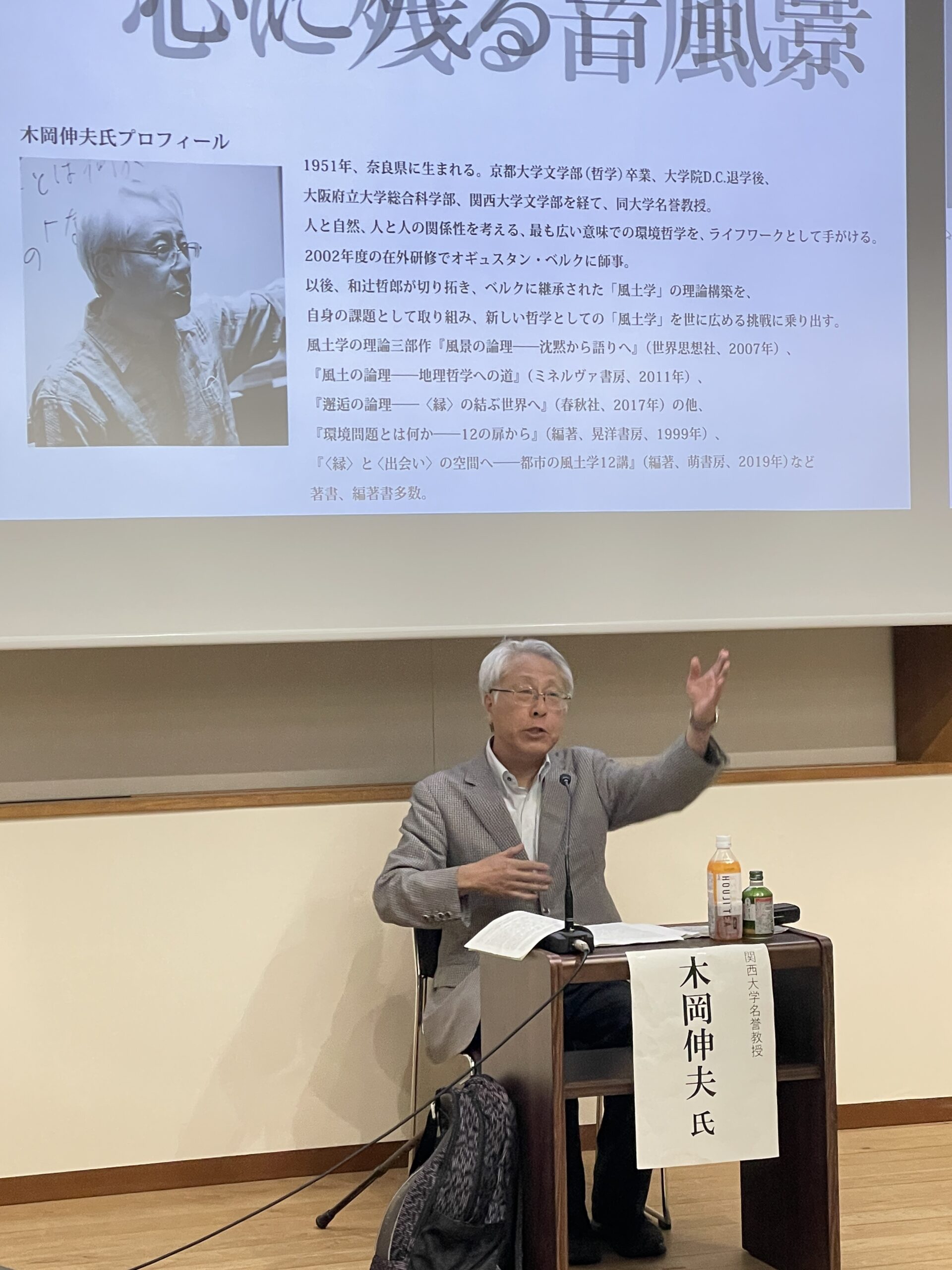 講演会 招待講演「沈黙と響きのあいだ――サウンドスケープに寄せて」 2024.08.21 講演会 日本サウンドスケープ協会主催のシンポジウム《心に残る音風景》(2024年6月16日、放送大学千葉学習センター)にゲスト参加し、招待講演「沈黙と響きのあいだ――サウンドスケープに寄せて」を行いました。 シンポジウム配布資料 木岡哲学対話の会No.5:「風景・風土・邂逅――風土学…前の記事